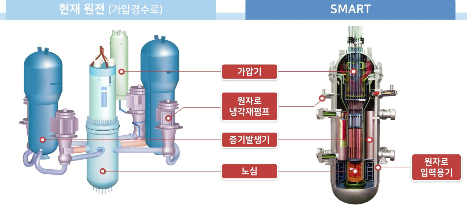SMR 대형 원전 안전성 비교 - 피동형, 방사선원 근본적 감소, 배관이 없는 일체형 설계
